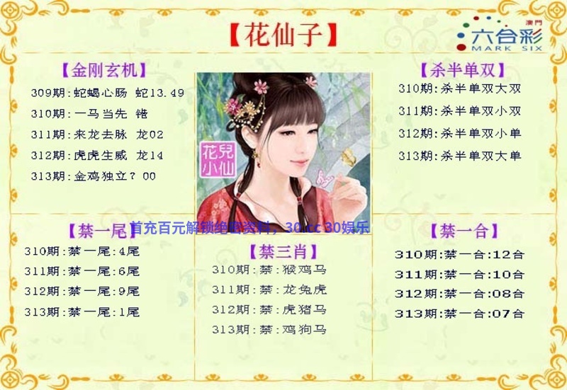 【花仙子解传真】312期:今期生肖三十开,一亩良田四十颗。平码特码都会出,三四门里一定中。二三四头特码出,顺手牵羊五来开。倾国倾城迷众生,只求平安和快乐